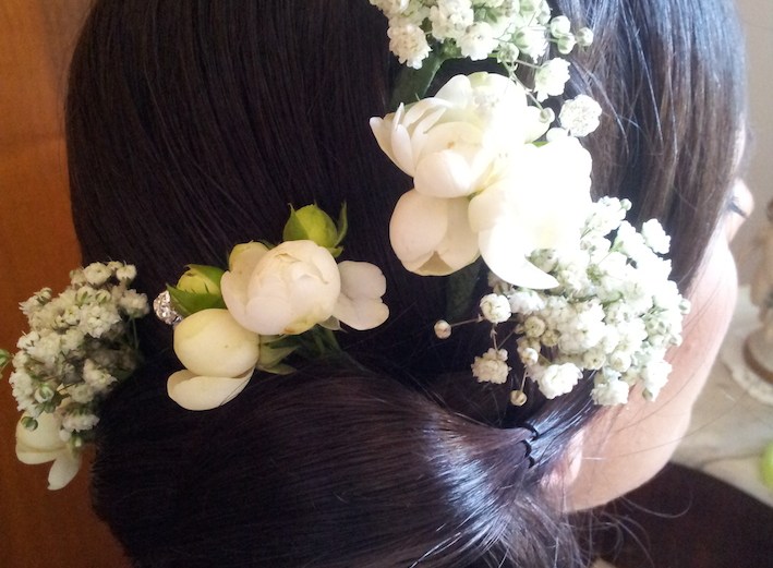 acconciatura floreale da sposa…